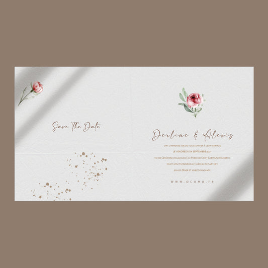 Faire part de Mariage - Fleurs rouge